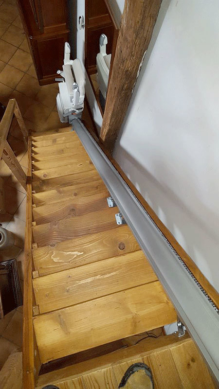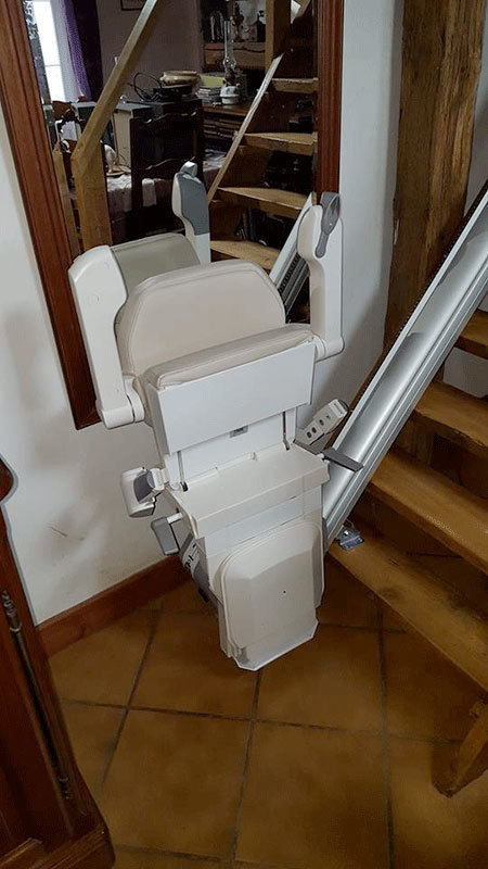 Installation d'un monte-escalier Handicare Xclusive pour un escalier droit d'un étage, réalisée par notre partenaire Blanchet, dans la région du Cher à Bannegon.